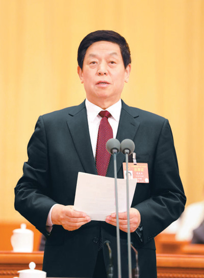3月5日,第十三届全国人民代表大会第二次会议在北京人民大会堂开幕。栗战书主持会议。 |