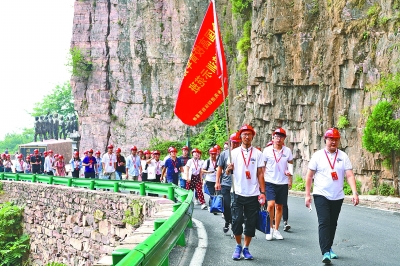 图为学员们在位于太行山深处的回龙挂壁公路教学点进行体验式教学。徐坤摄/光明图片