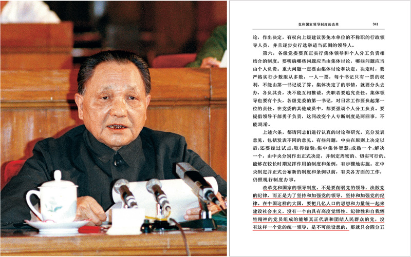 右图为邓小平同志有关坚持和加强党的领导的重要论述。