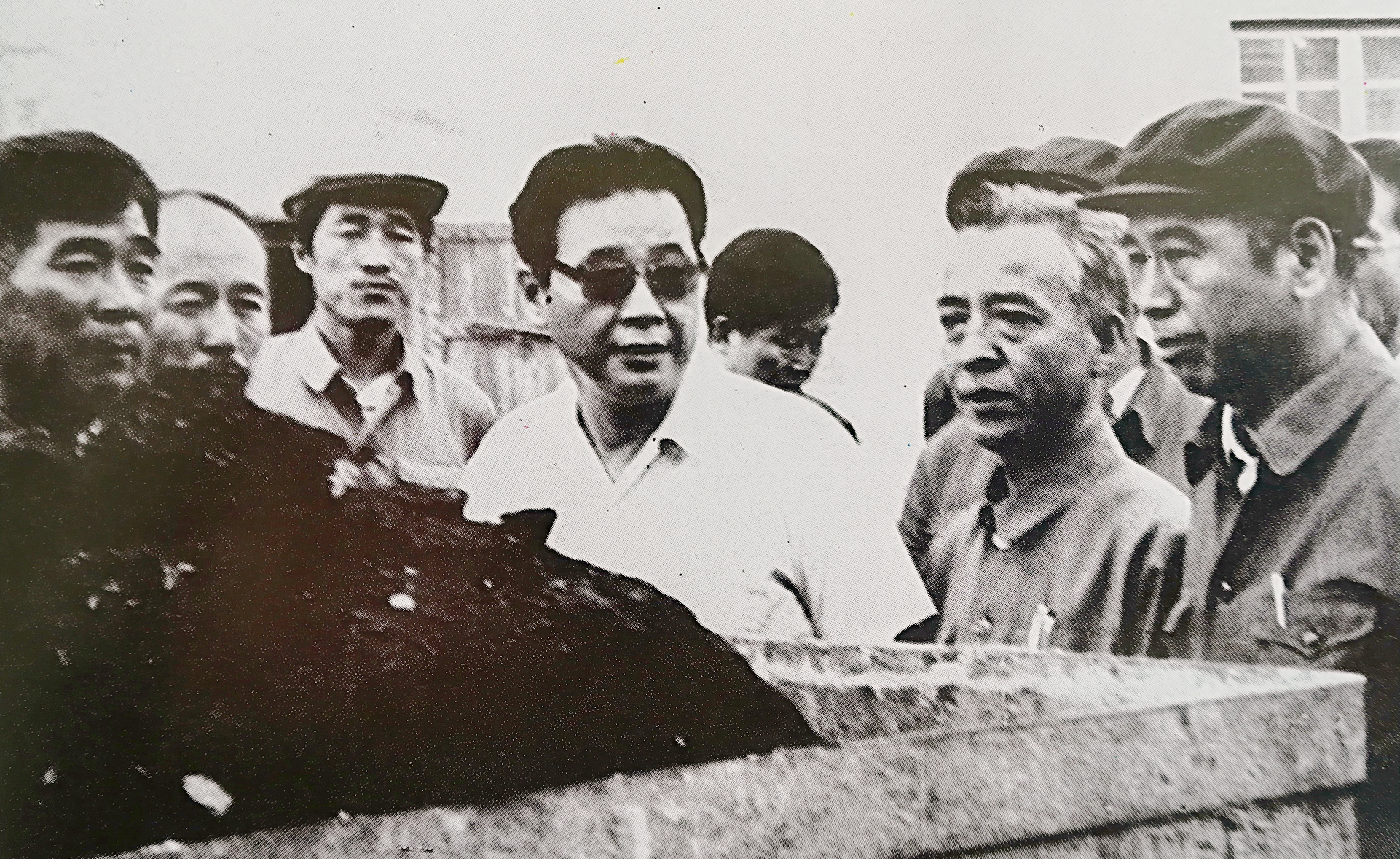 1983年9月,时任国务院副总理李鹏(左四)视察双鸭山矿务局七星煤矿