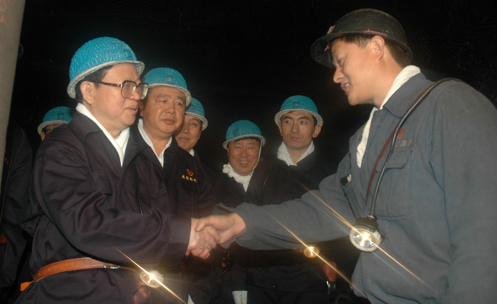 2006年10月21日,时任黑龙江省委书记、省人大常委会主任钱运录(左一)到龙煤集团鹤岗公司调研。