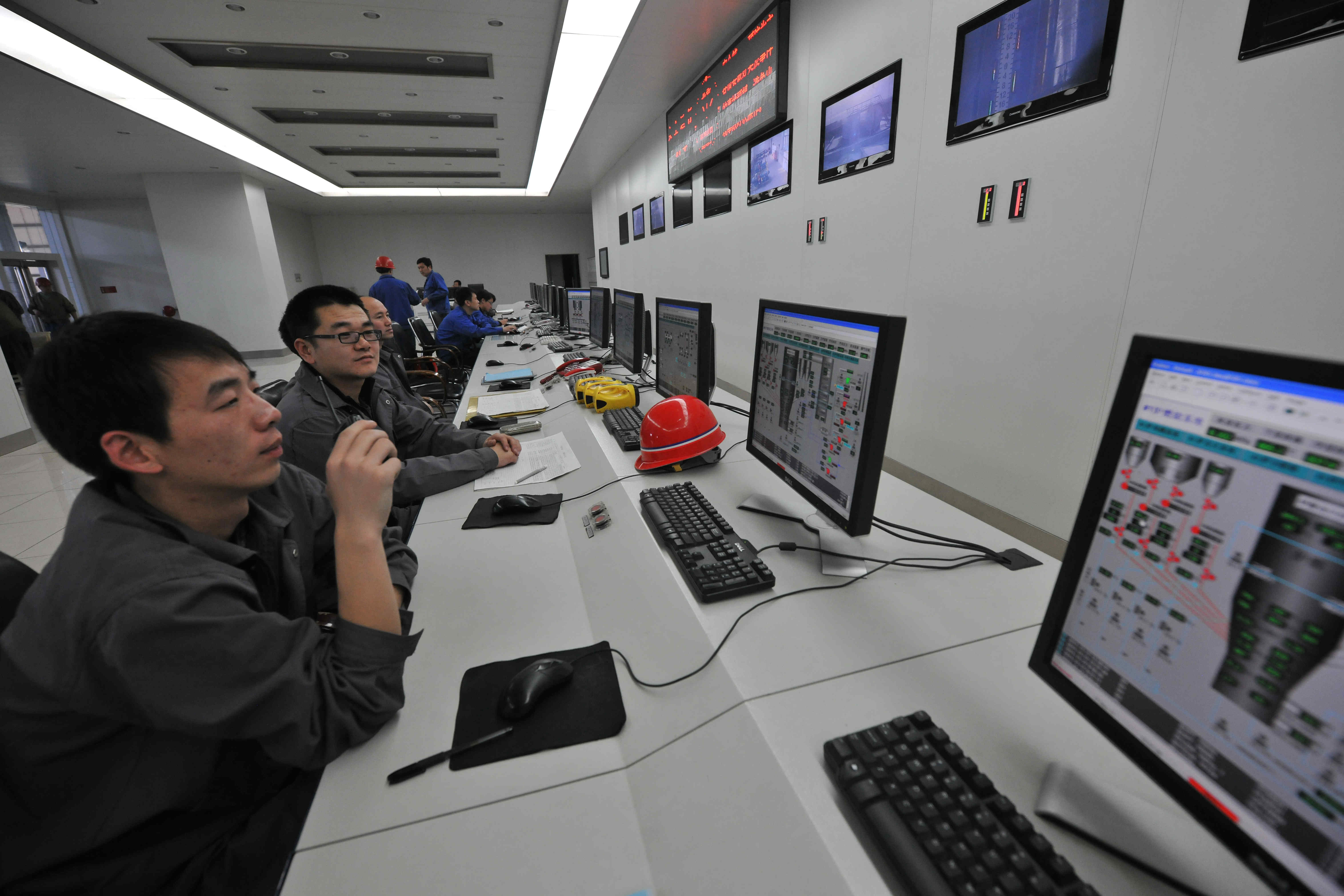 龙煤集团鹤岗矿业公司立达矸石电厂主机监控室。 龙煤集团鹤岗矿业公司综掘机安装现场。