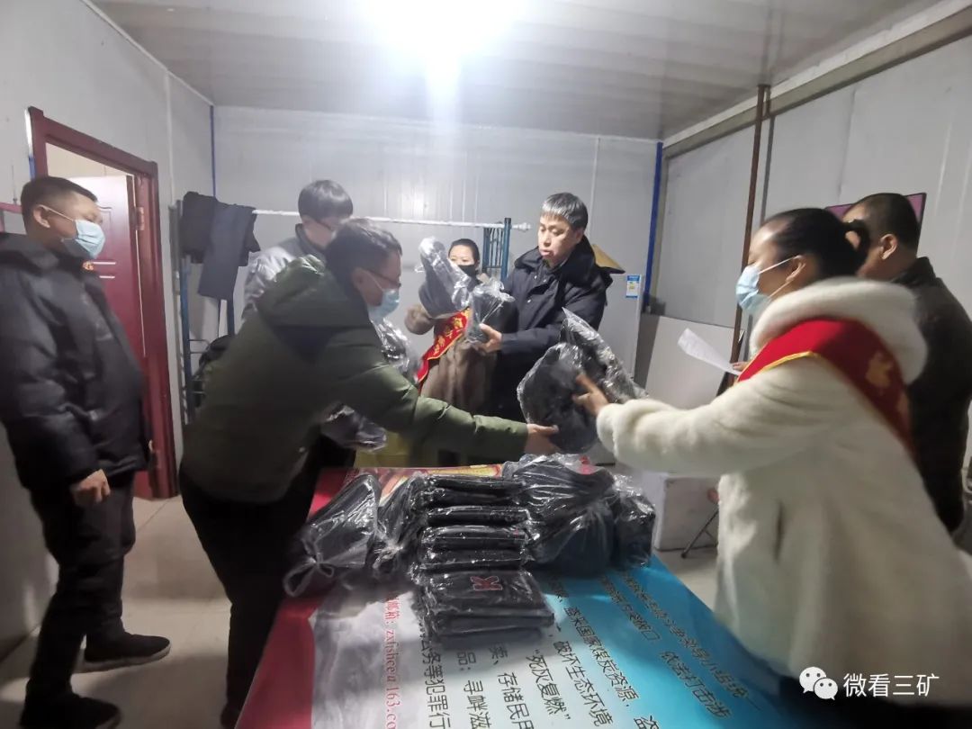 活动中,该矿工会女工家属协管员把蕴含有温暖牌、爱心牌的棉大衣、棉鞋、棉帽子、棉手套等保暖物品送到地面一线职工们的手中,还不是叮嘱他们一定要时刻紧绷安全线,按章作业,牢记安全生产规程。大家纷纷表示一定不辜负嘱托,保证做到上安全岗,干标准活,为矿井安全生产提供有力保障。