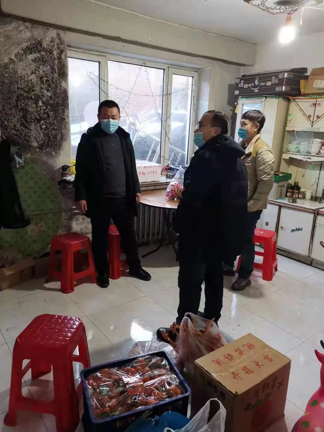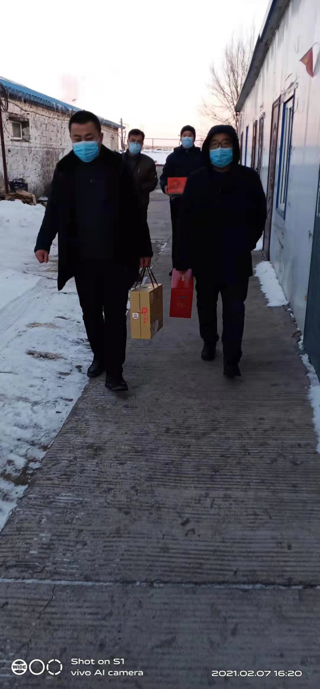按照矿建公司党委要求,2月7日这天,二十三工程处党政领导顶着刺骨的严寒,乘着满载丰富年货的“皮卡”车,来到临时居住在鹤岗市及附近矿区内“就地过年”的部分职工家中走访慰问。