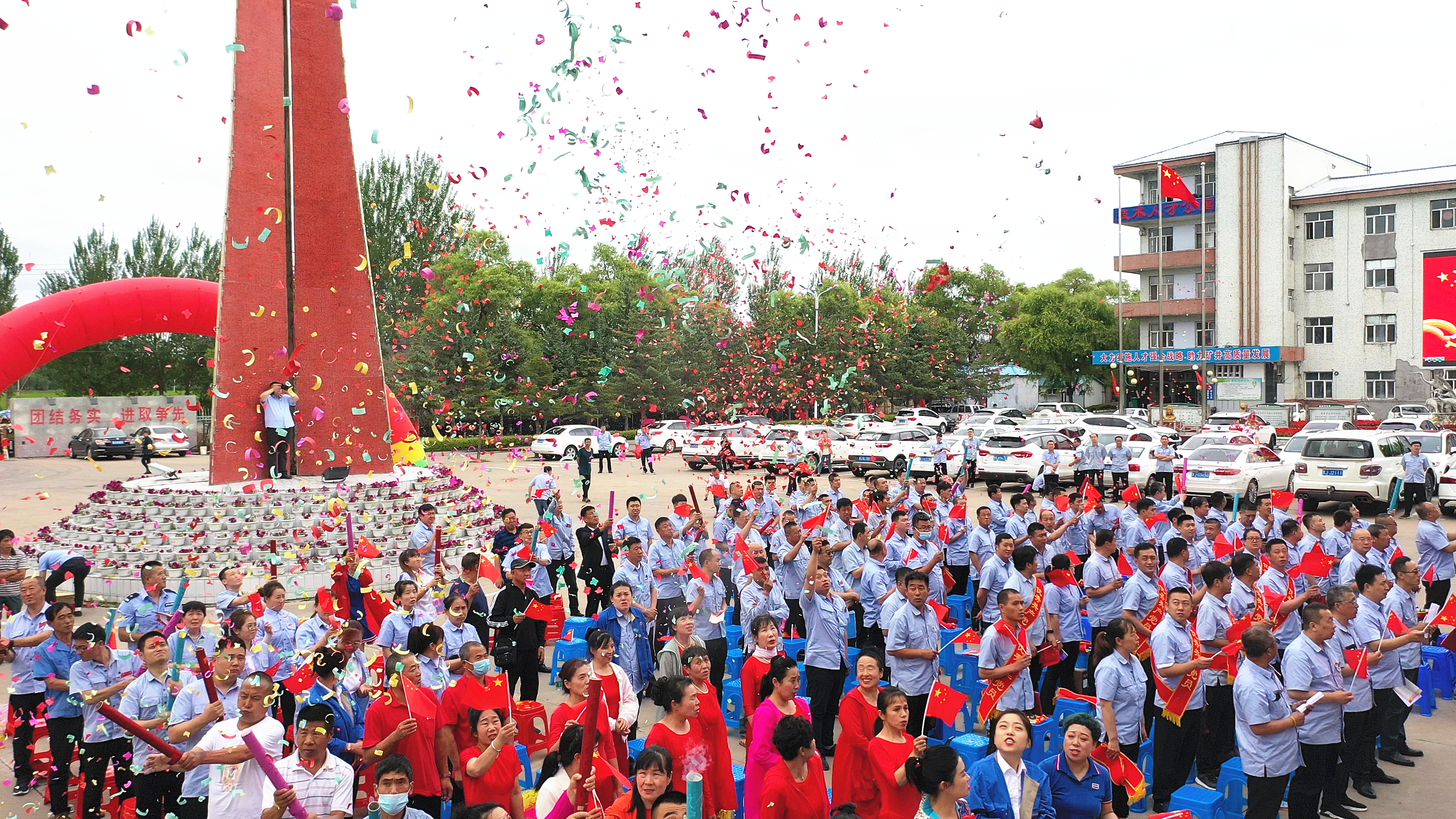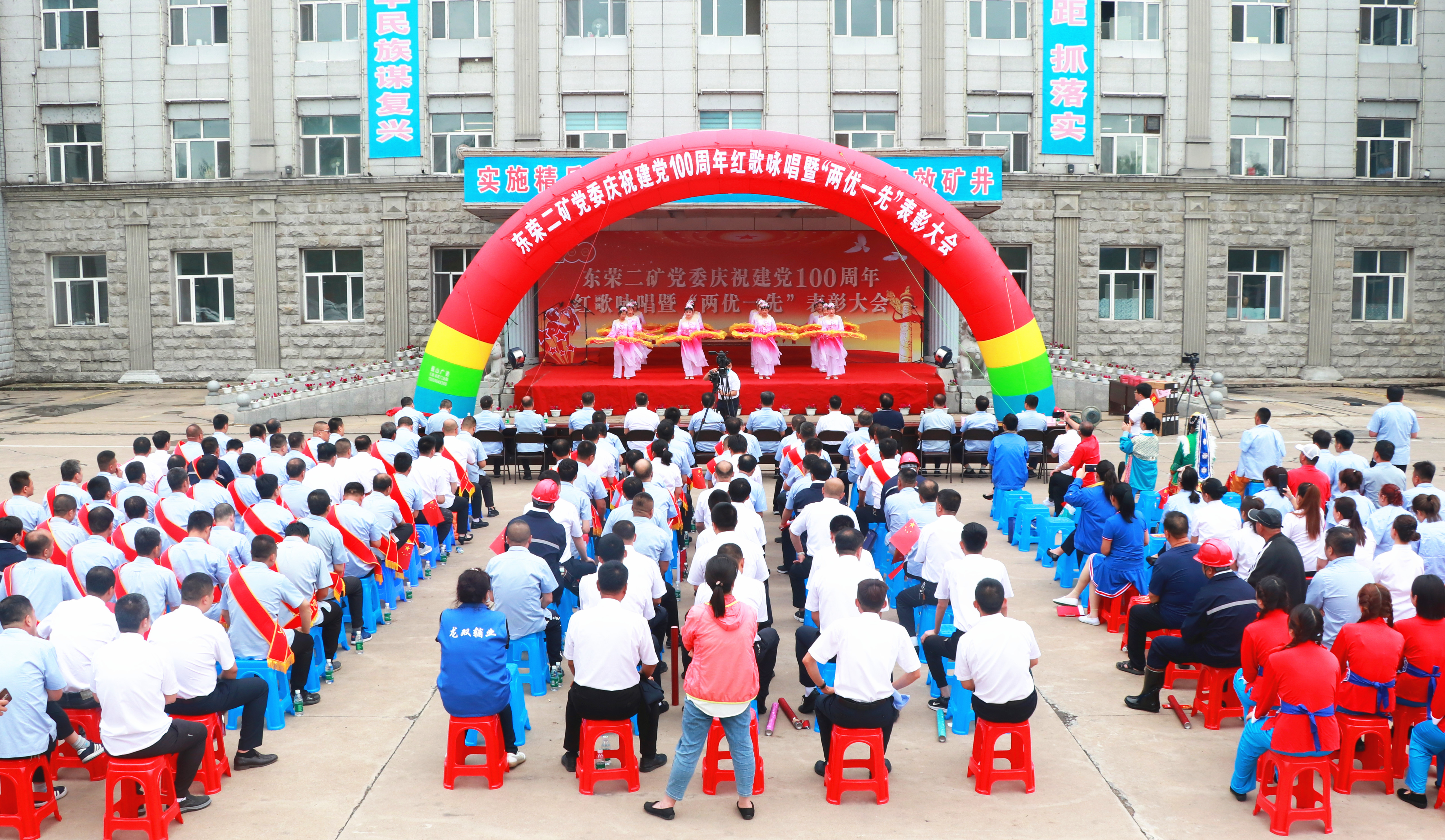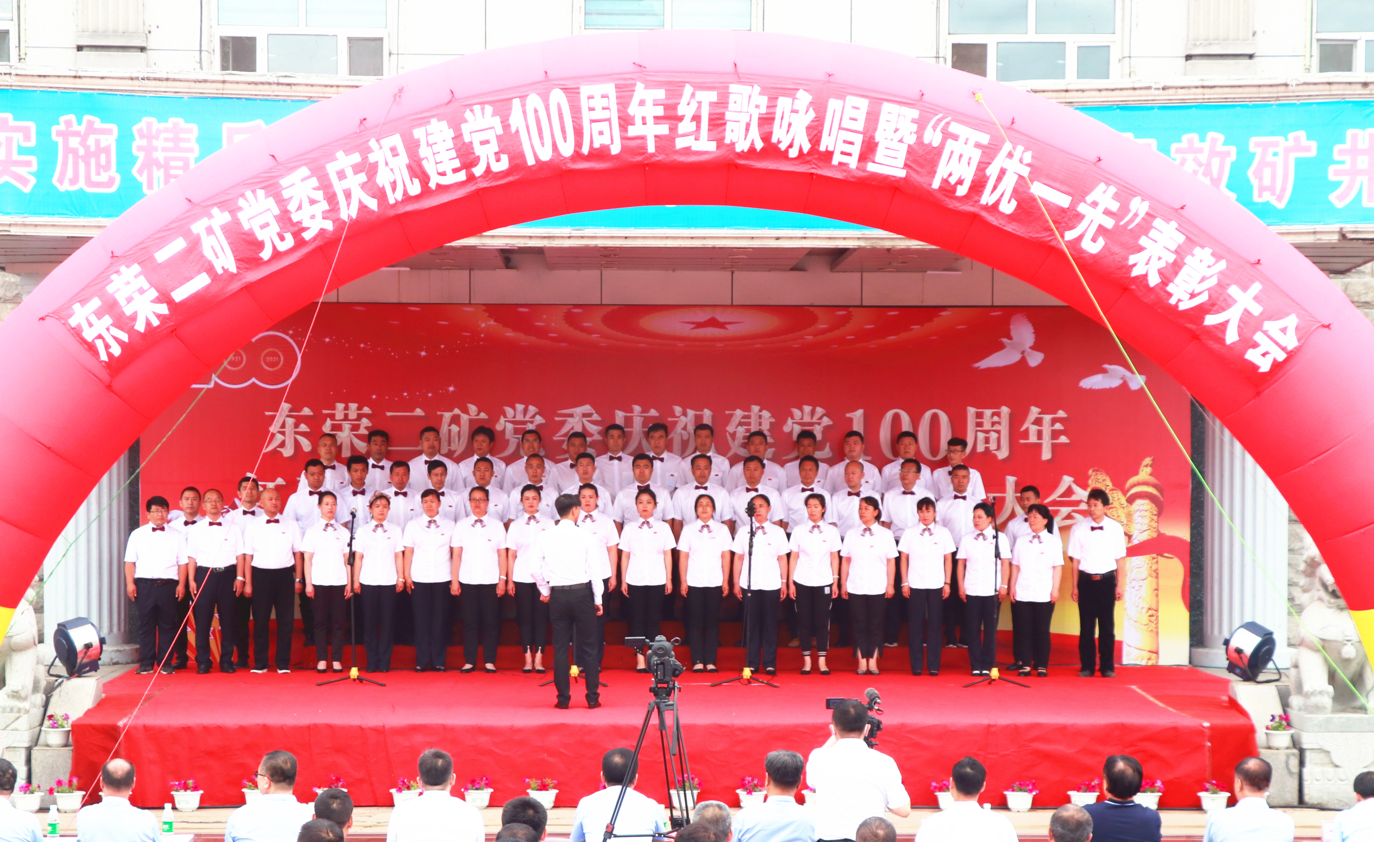近日,东荣二矿工业广场人声鼎沸、红旗飘扬,把初夏绿色环绕的矿区点缀成了欢乐的海洋。为了庆祝中国共产党建党100周年,表彰先进基层党组织、优秀共产党员和优秀党务工作者,号召广大党员干部以习近平新时代中国特色社会主义思想为指引,弘扬党的优良传统和作风,在企业高质量发展、建设安全高效矿井进程中奋发进取、担当作为,东荣二矿党委组织召开庆祝建党100周年红歌咏唱暨“两优一先”表彰大会。