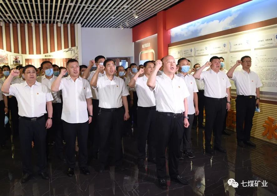 “我志愿加入中国共产党,拥护党的纲领,遵守党的章程,履行党员义务……”在参观活动中,党员干部面向党旗,重温入党誓词,铮铮誓言响彻在反腐倡廉警示教育基地,字字铿锵表达了七矿公司每名党员干部对党的忠诚和热爱。