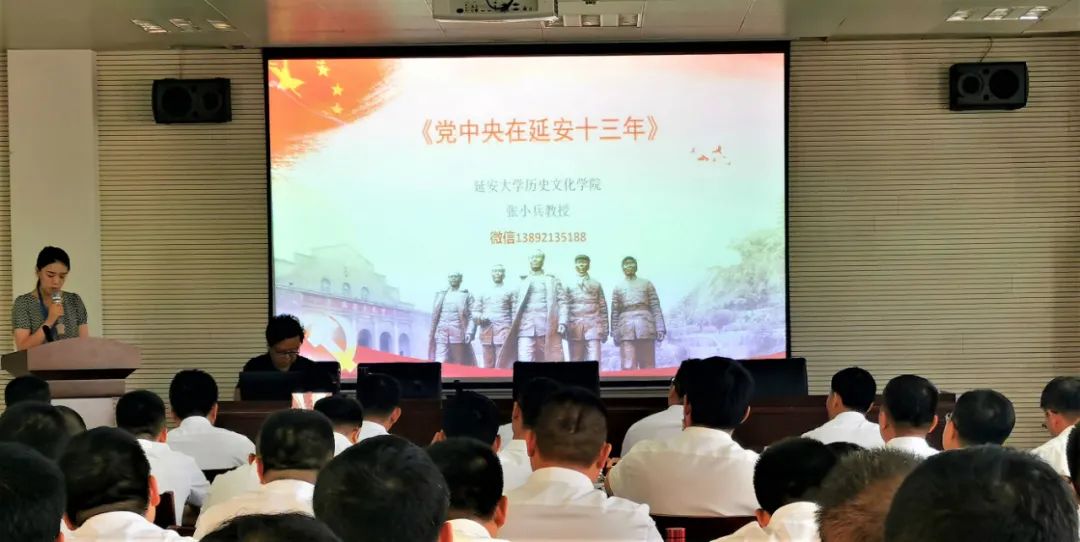 在党史教育专题教学中,由陕西省政协委员、延安市政协常委、民盟延安市副主委,延安大学第一任历史学院院长、教授、硕士生导师,中国近现代史重点学科带头人张小兵教授为全体学员上了《党中央在延安十三年》的专题教学课。