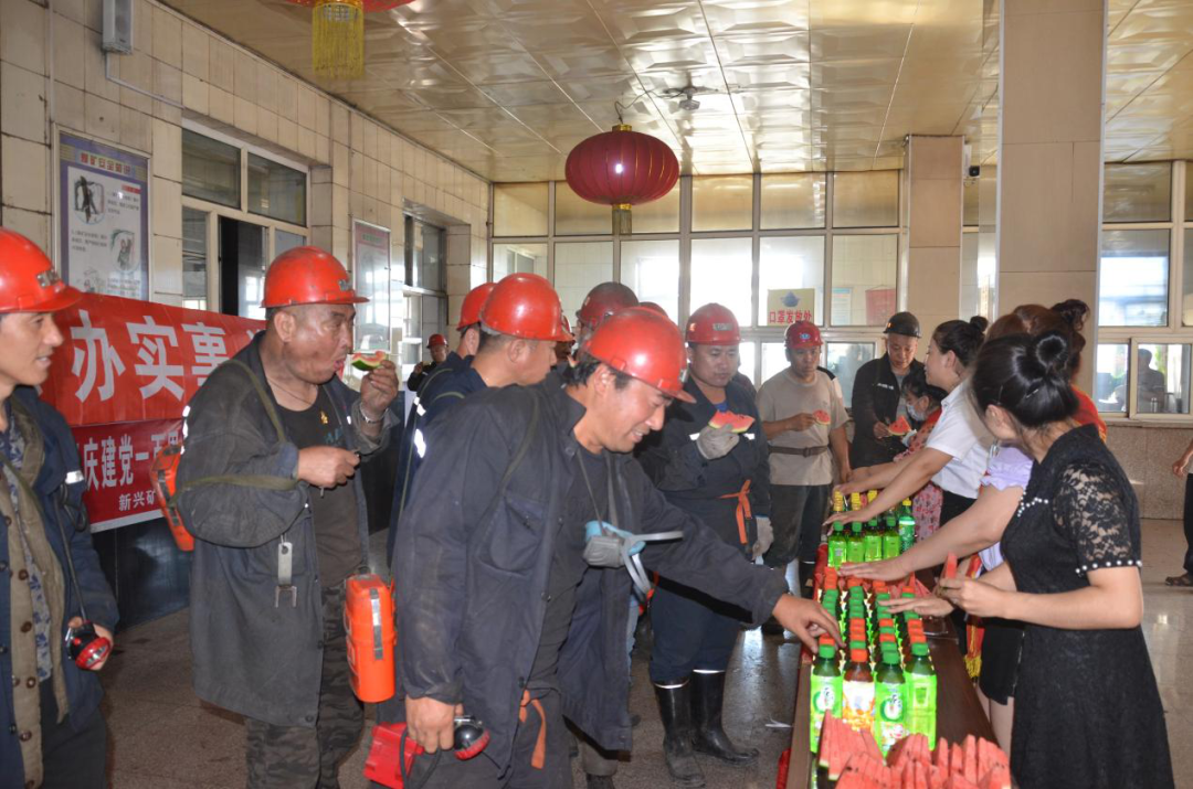 在立井候罐大厅,青年干部和家属协管员为升入井职工送上了消暑的冰镇的饮品和切好的西瓜,让职工在炎炎夏日感受到一丝清凉,切实感受到企业对职工的关怀。职工们对送清凉活动纷纷表示,“还是共产党好,给我们送来了清凉的饮品和西瓜。我们在工作一定兑规作业,提高工作效率,多出煤、多进尺,为企业发展多做贡献!”从七月份开始,综采二队、西六区、综采队、开拓区等单位还为职工准备冷饮,开拓区准备了一个冰箱,为职工提供冰镇矿泉水消暑解渴。