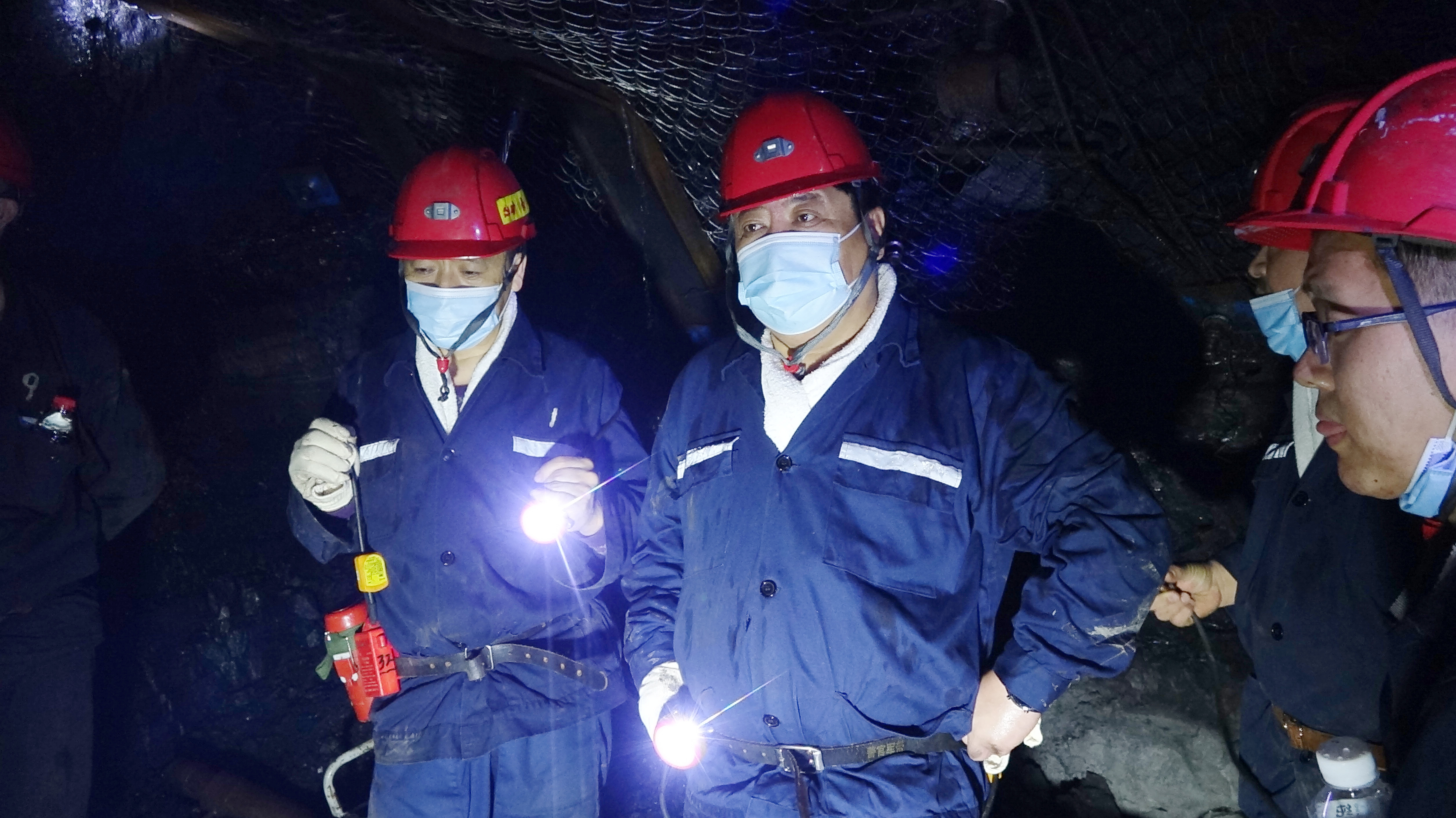 在东荣三矿6062段掘进工作面,宫延明查看了采区皮带上山施工等情况,了解了新型水炮泥使用情况,听取了当班瓦检员现场检查情况汇报,并对瓦检员进行了现场考教。