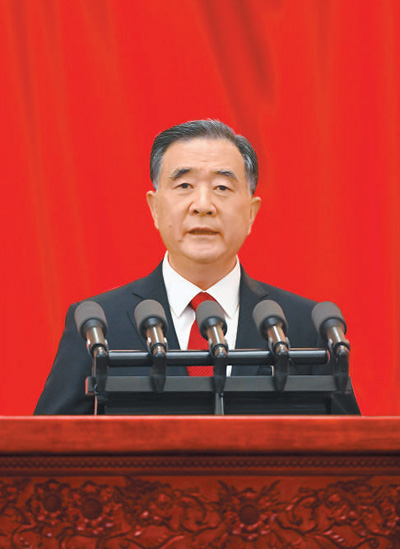 汪洋代表政协第十三届全国委员会常务委员会,向大会报告工作。