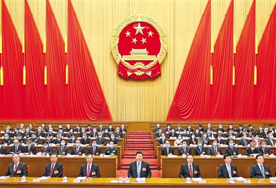 习近平、李克强、汪洋、王沪宁、赵乐际、韩正、王岐山和大会主席团成员在主席台就座。