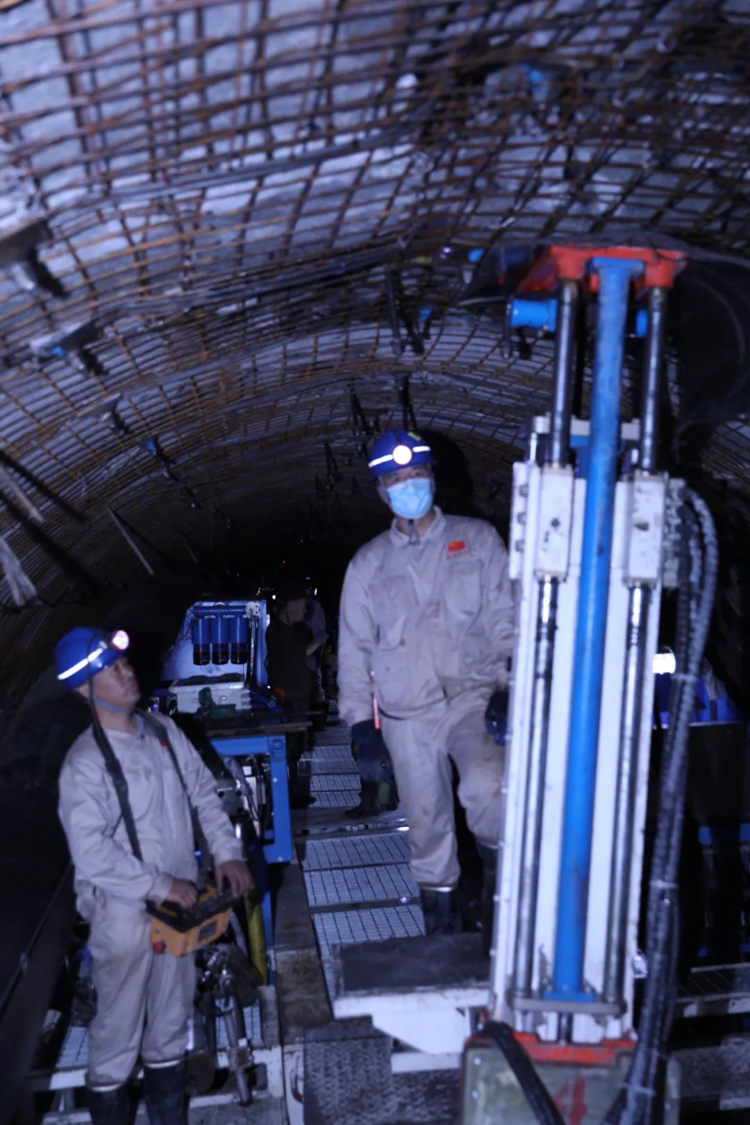 由于疫情原因,盾构机一些急需的辅助运输系统配件无法从上海发运,导致出现盾构机水管鼓管,接到汇报后,除了井下一人带班外,四人都不约而同地来到工作面,五人聚齐共同研究,他们亲自上手反复试验,终于解决了问题。