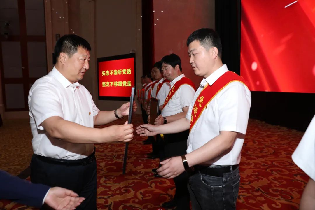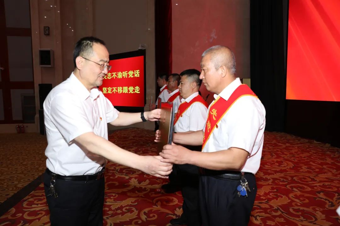 宫延明、赵维国、卢新军、孙久政、刘金祥、陈贵林为先进党委(直属总支)、优秀共产党员标兵、先进党支部、先进党小组、优秀共产党员和优秀党务工作者颁奖。