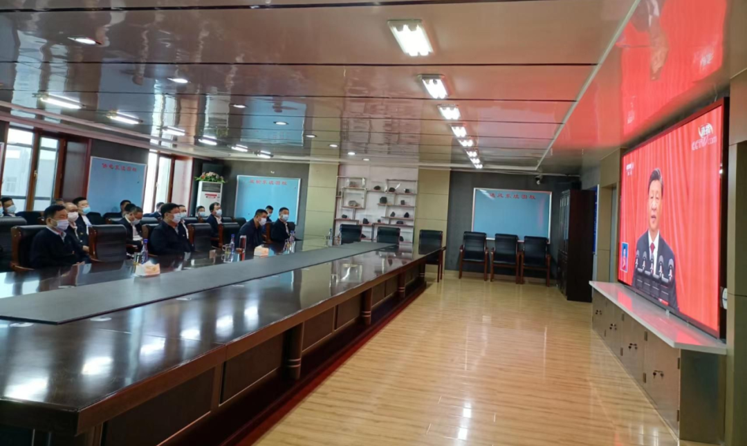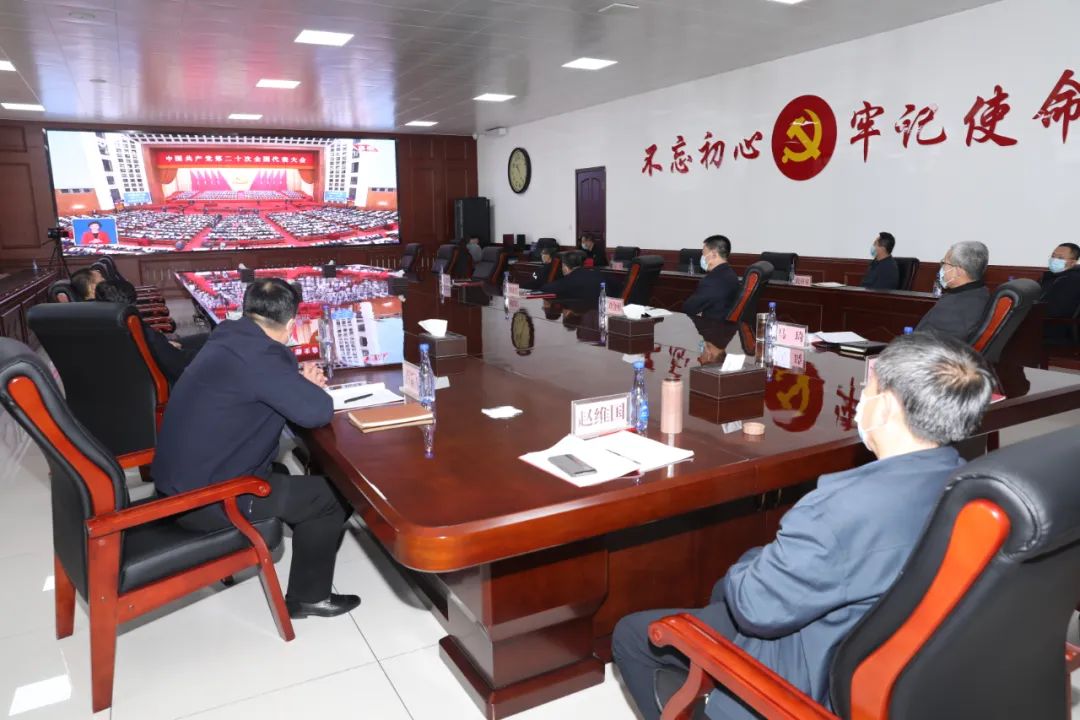 公司党政领导宫延明、赵维国、马琦、卢新军、孙久政、刘金祥、刘丹、刘洪泉、史学东、刘忠启、张广、魏晓东,公司副总师,公司各部室负责人及金牌宣传员,公司各单位中级管理人员、干部职工及金牌宣传员等分别在公司和各单位集中观看党的二十大开幕盛况。同时,因当班入井不能集中收看的干部职工,通过手机、电脑、电视等方式回看重播。