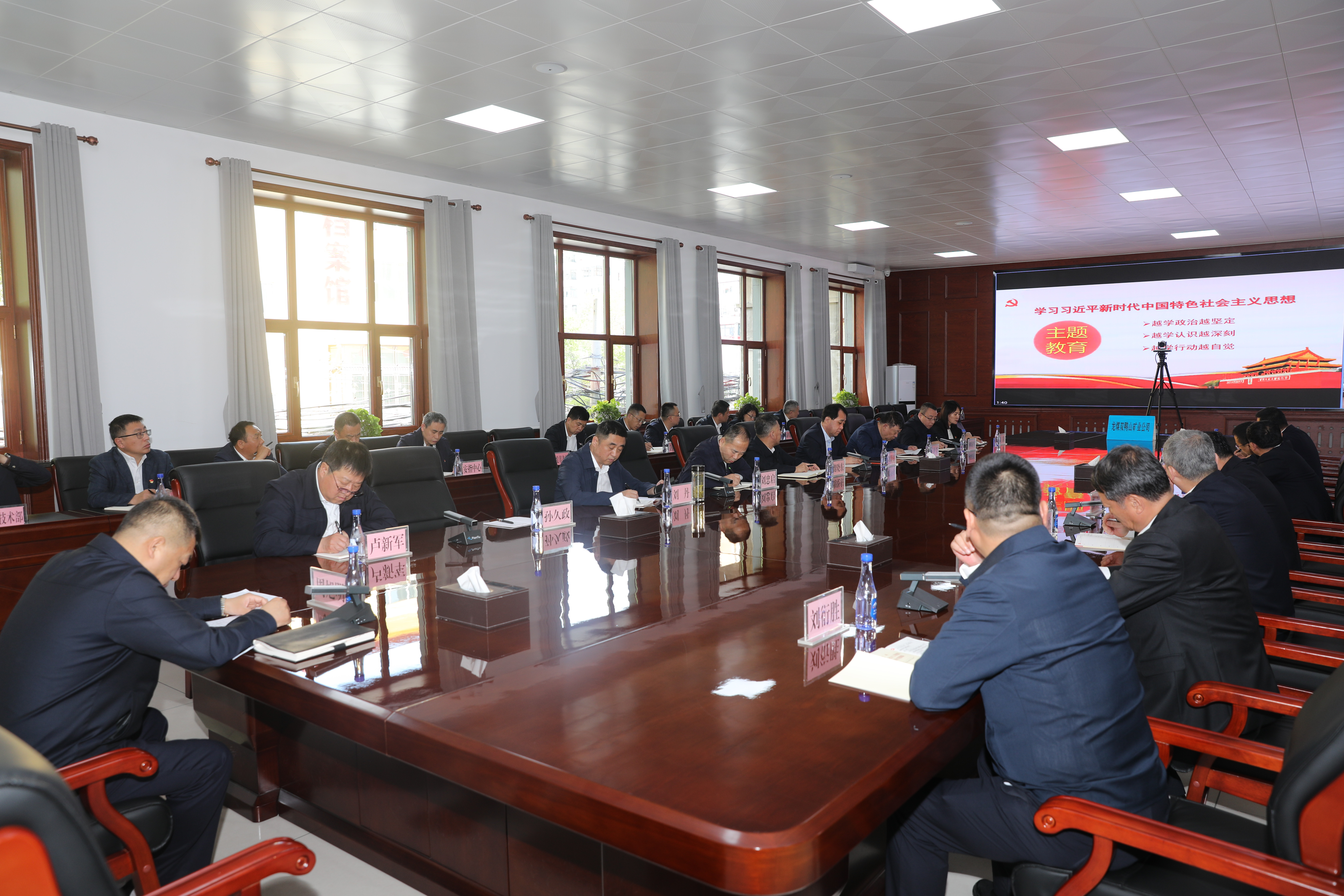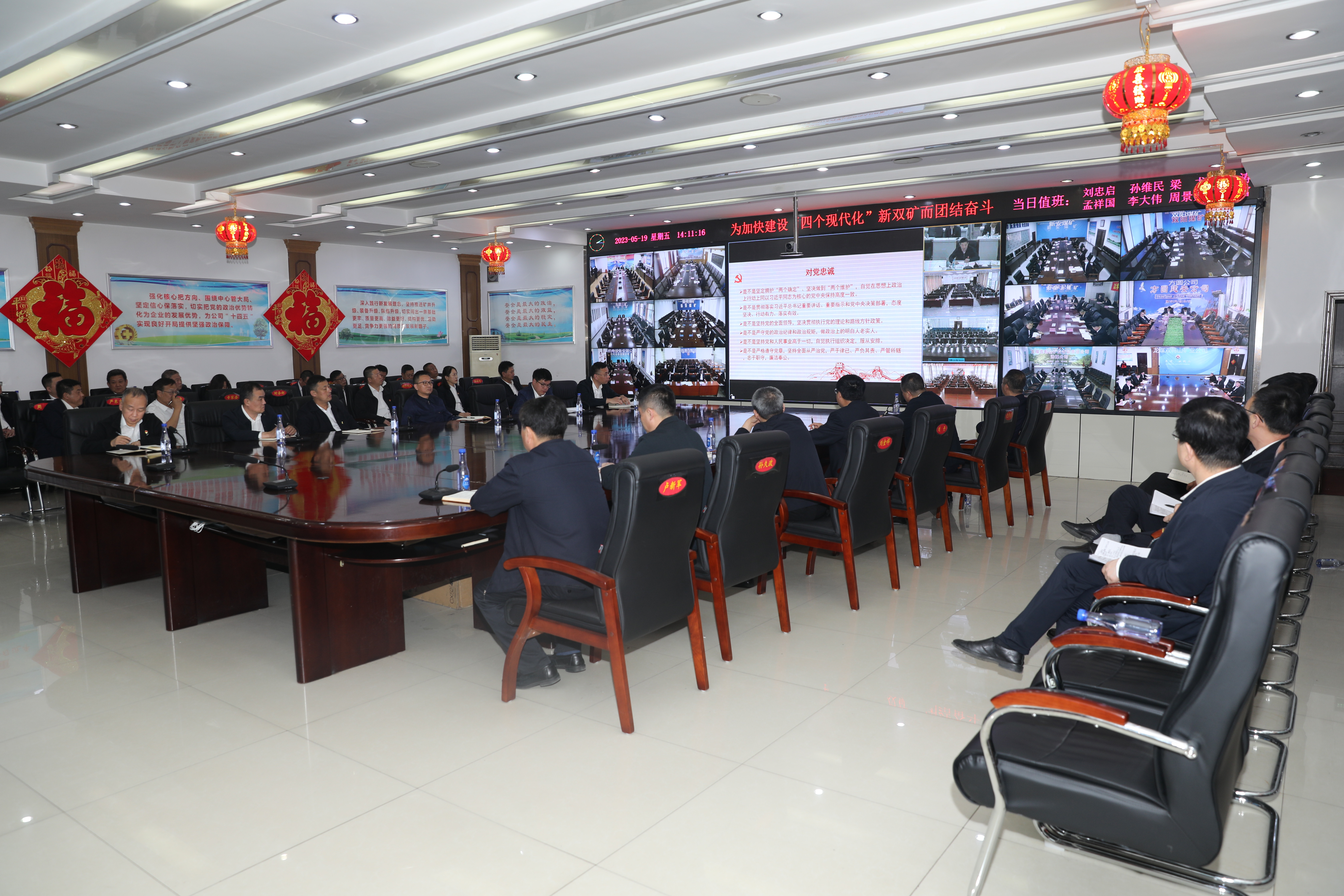 双鸭山矿业公司领导周旭明、卢新军、刘衍胜、孙久政、李春、刘丹、莫永杰、刘忠启、张广、魏晓东,公司副总师,公司机关及各单位中级副职以上管理人员分别在公司和各单位分会场参加会议。