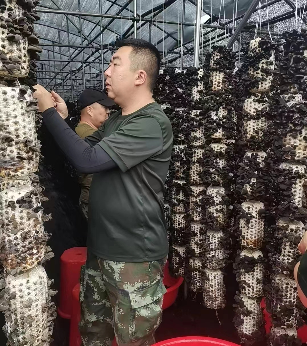 “今年的端午节假期,我们没休息,我们全公司的所有党员干部都来这里了,采摘木耳来了!”,“今年的木耳长得好,黑黝黝一片,叶片饱满,富有弹性,木耳丰收了!”一边紧张忙碌的党员干部,有的在接听电话,有的在视频连线,他们充满收获喜悦的心情向关心询问的亲友回答着。