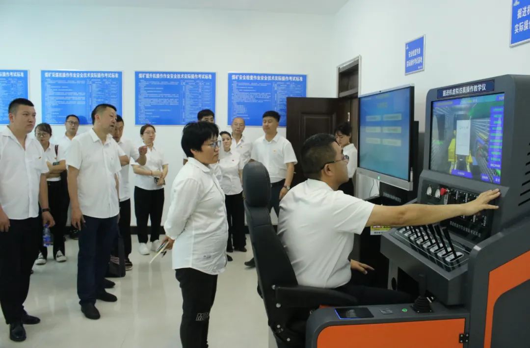 授课前,与会人员对集贤矿安全文化长廊、掘进区313段班前活动室、安全培训中心各实操教室、安全培训内业等进行参观学习。