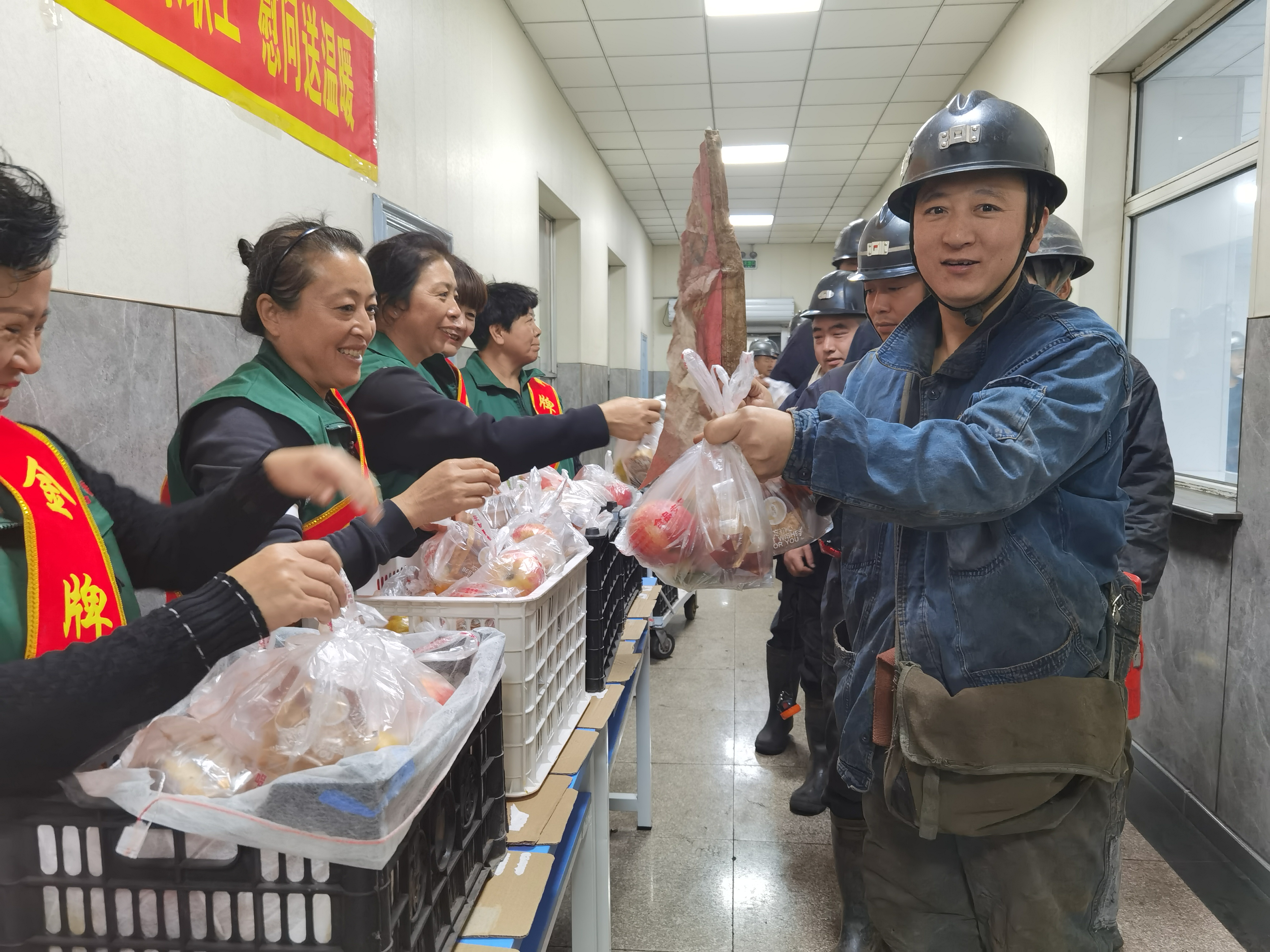 中秋节当天,金牌家属为坚守岗位的干部职工准备了特殊的“节日礼包”,把寓意团团圆圆的月饼、寓意平平安安的苹果、寓意心想事成的橙子等饱含着美好祝福和祝愿礼包,送给入井职工们,还不时地提醒职工,要注意安全,要全力以赴工作,为奋力取得四季度安全生产经营目标加油鼓劲。