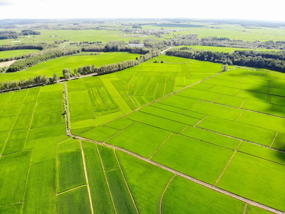 2022年7月,黑龙江省铁力市山泉农机农民专业合作社高标准有机稻田(无人机照片)。