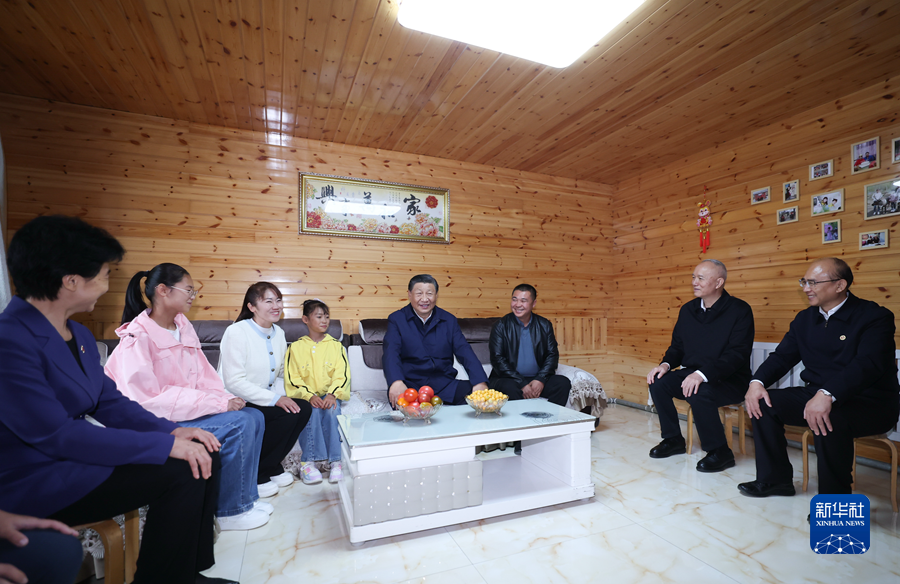 2023年9月6日,习近平在黑龙江大兴安岭地区漠河市北极村,同村民史瑞娟一家亲切交谈。新华社记者 鞠鹏 摄