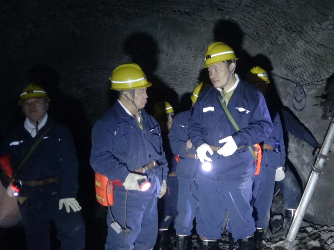在东荣一矿601段掘进工作面,王佳喜听取了当班安瓦员现场巡查情况汇报,查看了顶板管理、风筒吊挂、工程质量、设备使用等情况,详细了解了电子雷管使用、施工进度等情况。