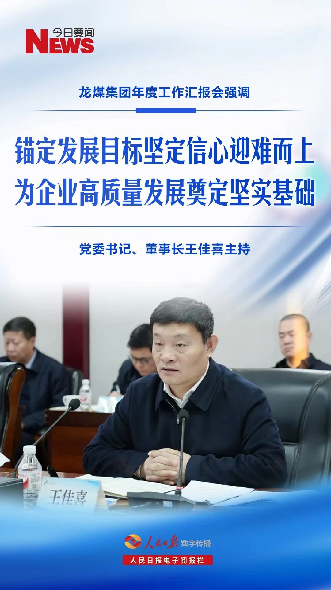 龙煤集团党委书记、董事长王佳喜主持工作汇报会,龙煤集团党委副书记、副董事长、总经理王戈出席。