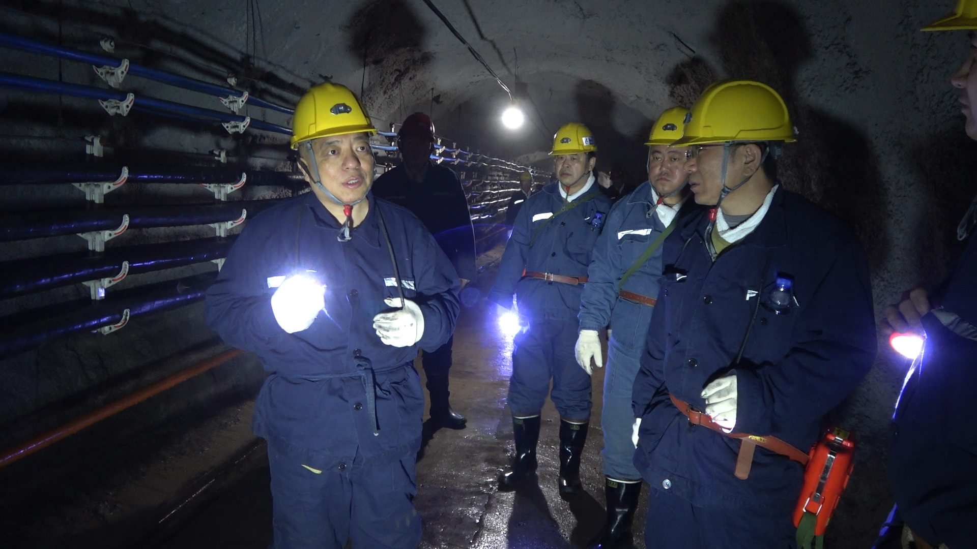 在掘进一区016队工作面,周旭明现场查看了全岩上山巷道施工质量、现场达标管理、局部通风、皮带运输管理等工作,询问了掘进生产工艺、机电运输系统摆布、区域储量、采煤重点队生产接续等方面情况,详细了解了掘进小班工资分配和分配政策推进落实等工作。