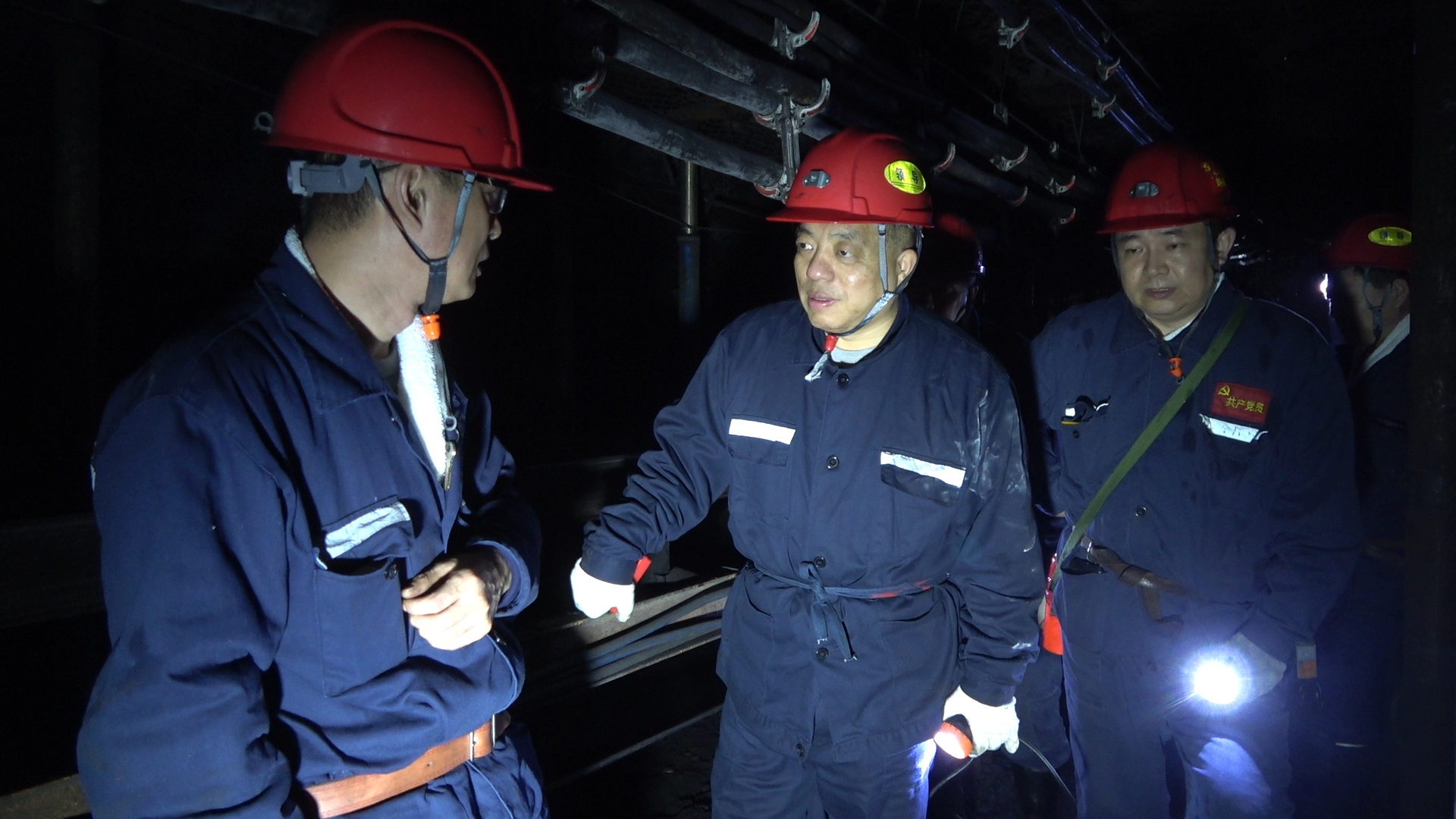 在采煤区Z51队工作面,周旭明先后查看了现场质量达标、“三机”使用状态等工作,询问了通风系统布置、日常瓦斯监测及采煤正规循环等情况,详细了解了区域灾害治理、生产接续、队伍建设等工作。