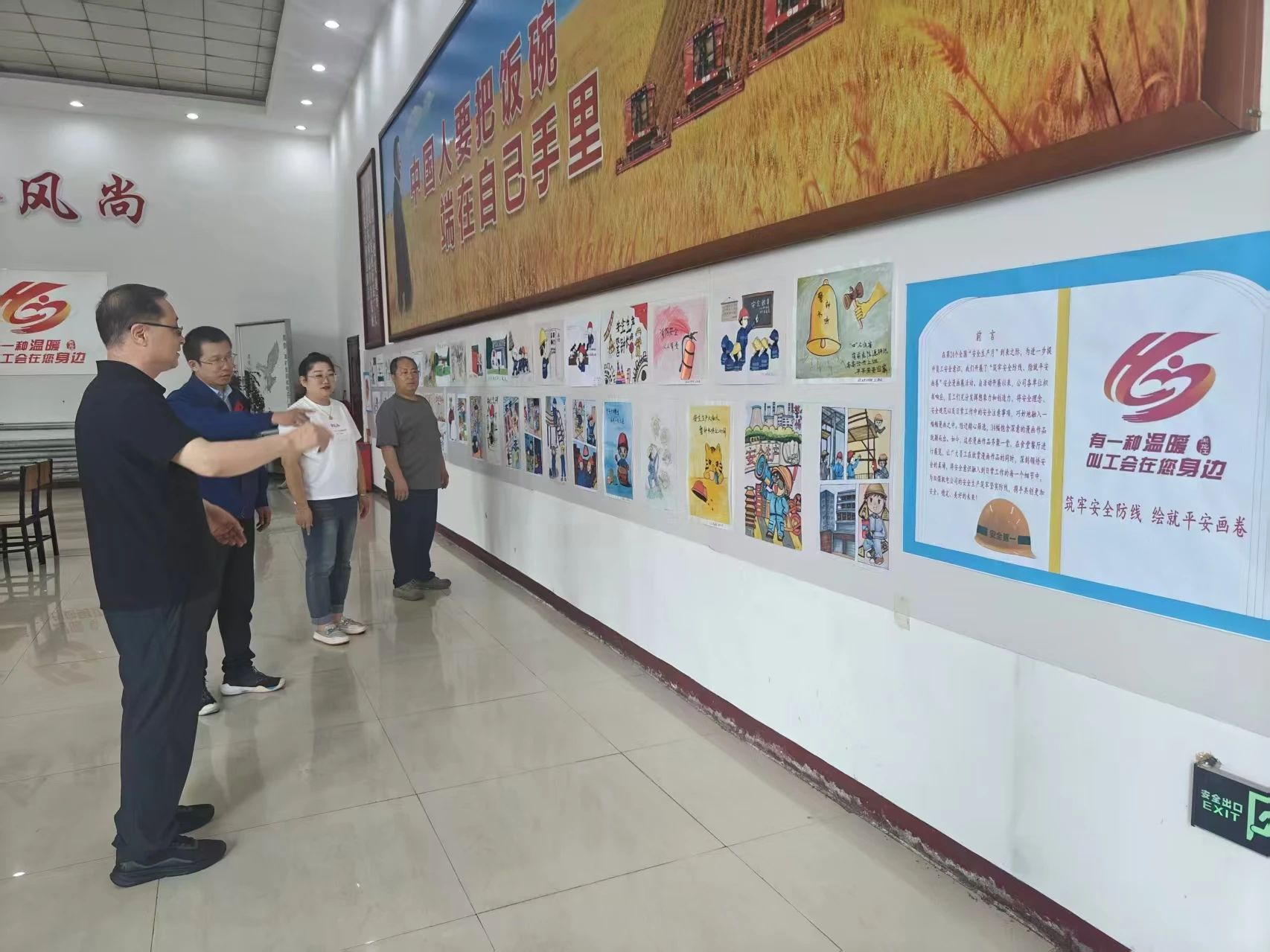 举办“筑牢安全防线 绘就平安画卷”主题漫画展。“这幅《一盔一带 安全常在》画得太生动了!”东荣一矿综采队职工在入井走廊驻足称赞。主题漫画展以红底黄字展板拉开序幕,活动共征集《高空作业系好安全带》《宣讲安全生产法》《敲响安全警钟》等一线职工原创作品587幅,用鲜活笔触讲述安全故事,从井下规范操作到应急逃生流程,每幅作品都聚焦着安全细节。入井走廊、办公楼大厅、职工餐厅等展区吸引职工拍照留存,安全理念深入人心。