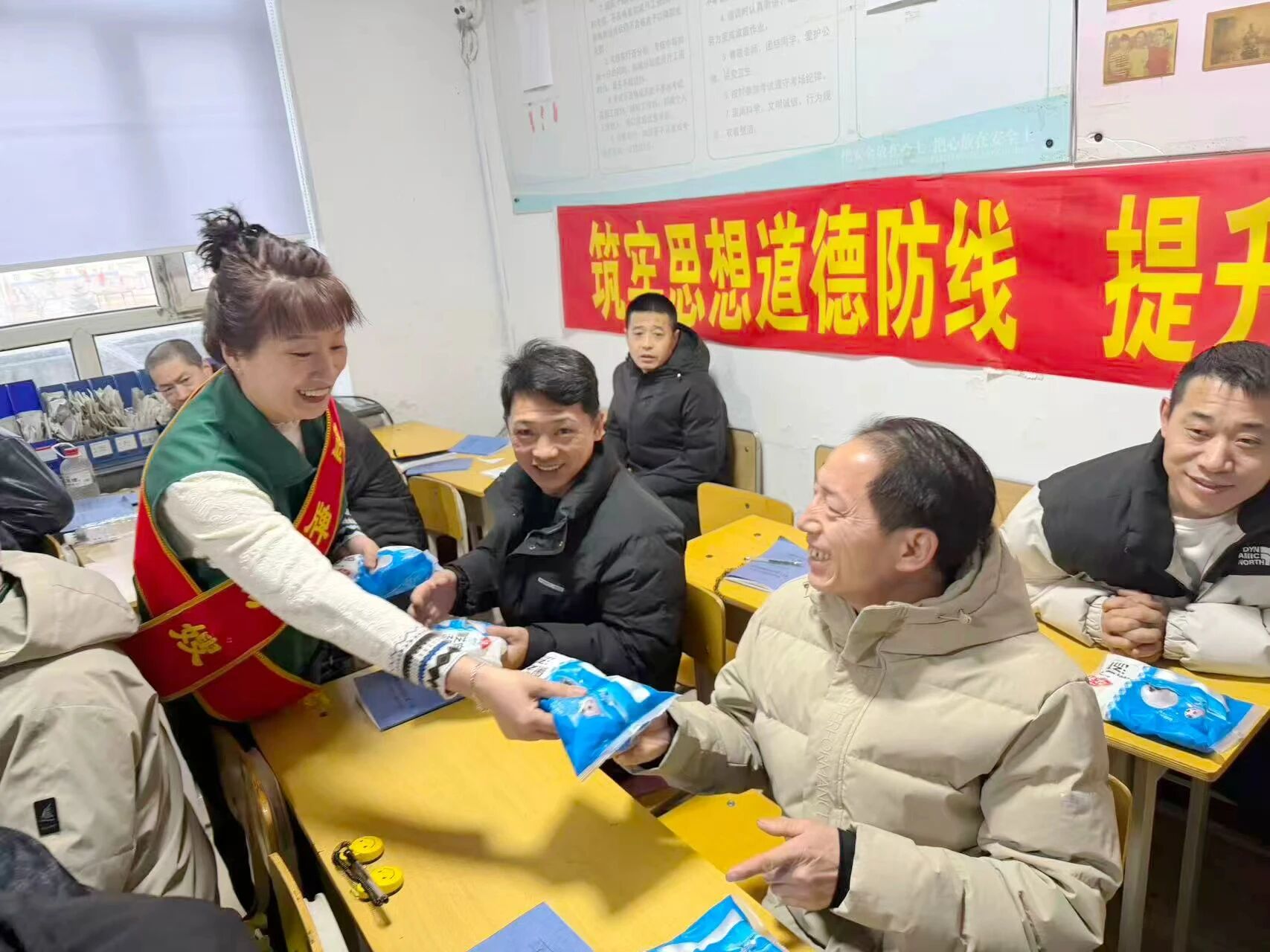 双阳矿工会组织家属协管员深入班前会,为职工们送上香甜可口的元宵,同时开展了一场别开生面的现场安全考问。